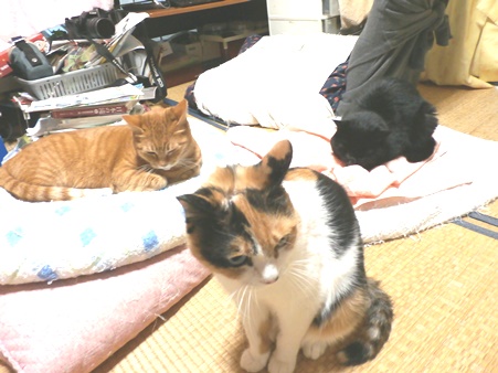 3匹そろってヒーターであったまっているところです。