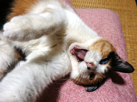 豆ちゃん、これはたぶん大あくびの一瞬です。おてんばさんです。