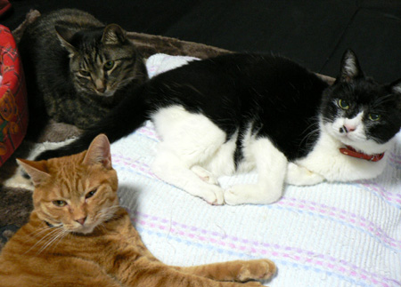 珍しく3匹がまとまってヒーターの前にいたのでバチリ。どうしてミユキちゃんはこういうシーンでも一緒にいないかなぁ。