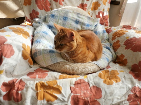 先週に引き続き、こないだまで猫トイレのあった場所で寛ぐきゃこちゃん。