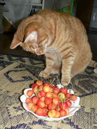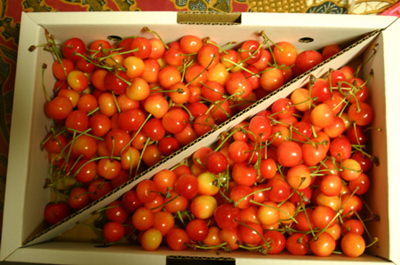 今日のおみやげのサクランボ。1キロ入りの箱で600円也~。さすが産地です。