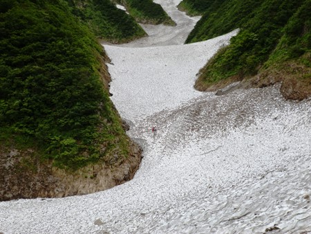 あと、本当なら滝のあるはずの雪渓を人が歩いて登って行くのも見ました。