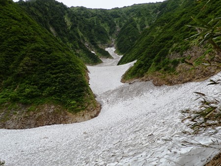 ピッケルとか持っていたから、経験のある人だと思うんですが、事故もあった雪渓なので、ちょっと怖かったです。