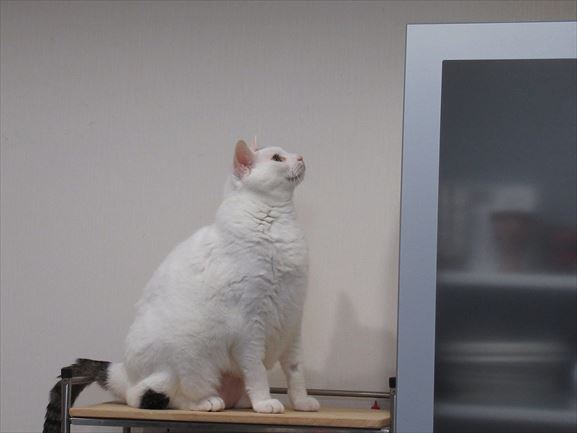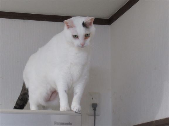 九ちゃん。病気で痩せて、体が多少軽くなったようで、高い所にも登るようになりました。
