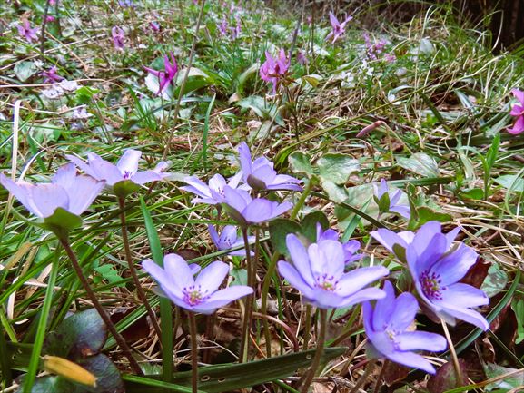 角田山のかなり上のほうでは斜面一面のカタクリとそれにまじった白い雪割草などの図も見れたんですが、上から下を覗き込むという形なので、イマイチ写真映えはしない感じでした。