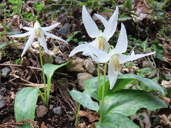 白いカタクリは角田山植物園(笑)で撮影した移植ものです。