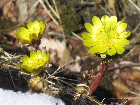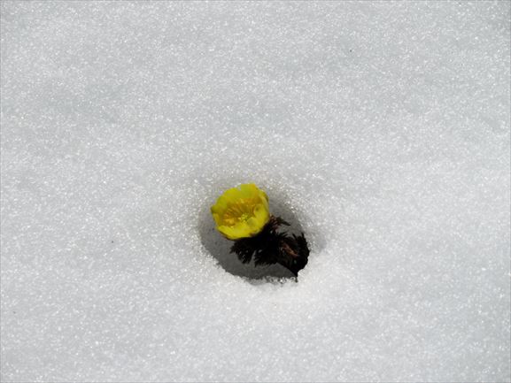 雪深い場所はまだまだこれから咲く場所なので、雪のない所だけ花が姿を現している状態。