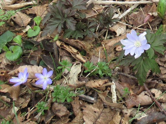 おや、君はキクザキイチゲか雪割草か。同じ大きさだわね。