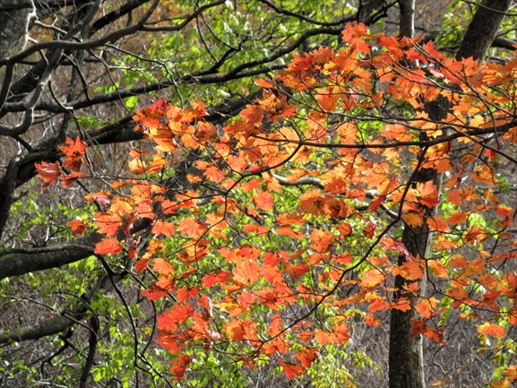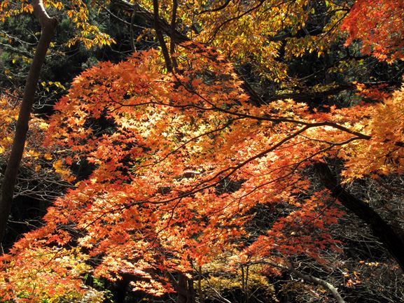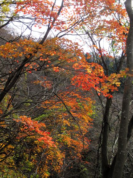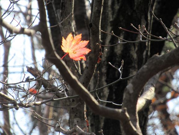 お地蔵さんのあたりから赤くなるモミジが多いコースなんですが、なんとか残っていてくれて、秋らしい風景を見ることができました。