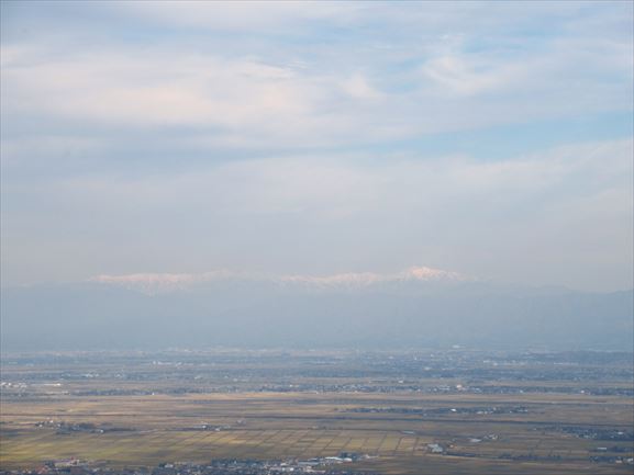 観音堂から見た、たぶん飯豊の山並み。白いです。