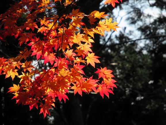 この季節に登ったことのない国上山なんですが、思った以上に赤や黄色に紅葉するモミジが多い山だとわかりました。