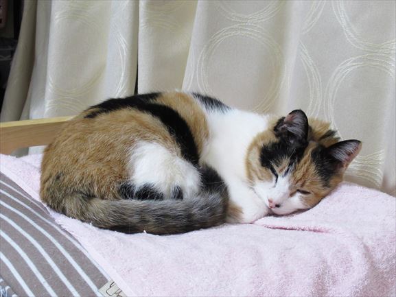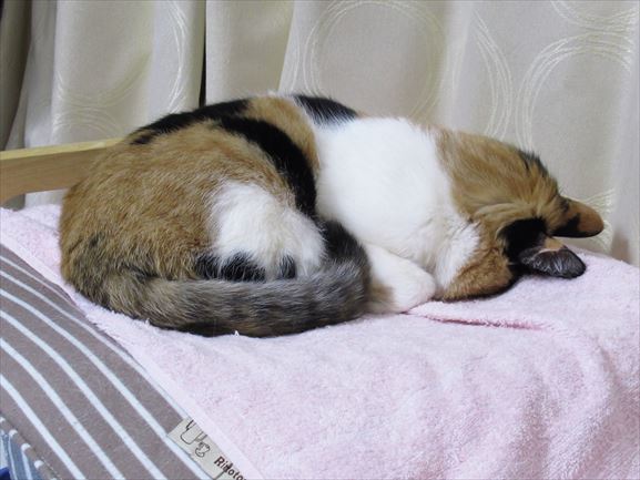 うふふ、ごめん寝の豆ちゃん。写真撮ったら、ちゃんと顔見せてくれましたよ。