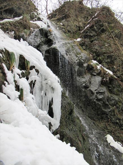 ちょっと暖かくもあったので、明神沢の滝は凍っていないとは思っていましたが、やっぱり凍っていませんでした。