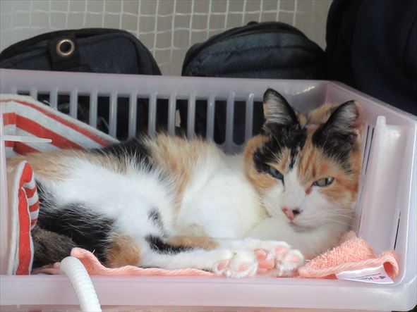 寝床の豆ちゃん。別のところに入れていた猫用のホットカーペットをこちらに入れ替えてあげたら、常駐するようになりました。よかったよかった。