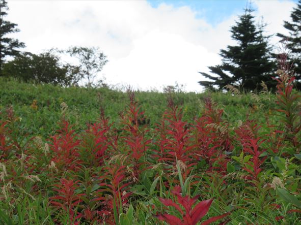 ヤナギランの葉っぱはすぐに赤くなります。秋ね。