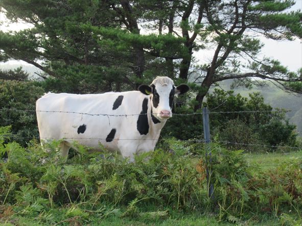 牛。前髪がカールしている牛。牧場から登る山なのよ。