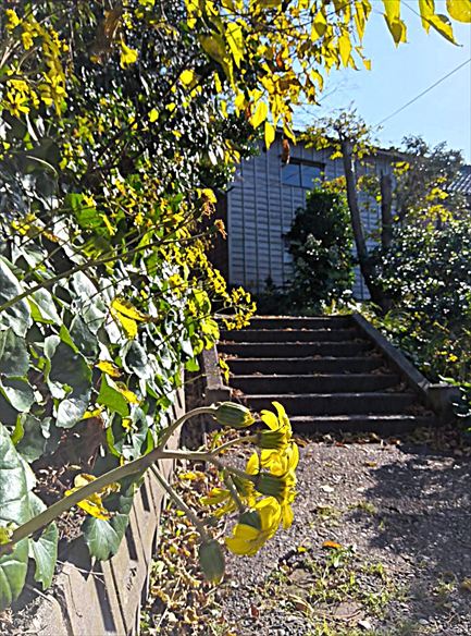 小さな坂や階段がたくさんあって、黄色い花があちこちに咲いています。