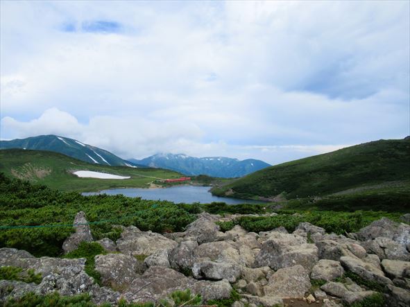 でも、登り切ってもうちょっと歩くと眼下に白馬大池が。