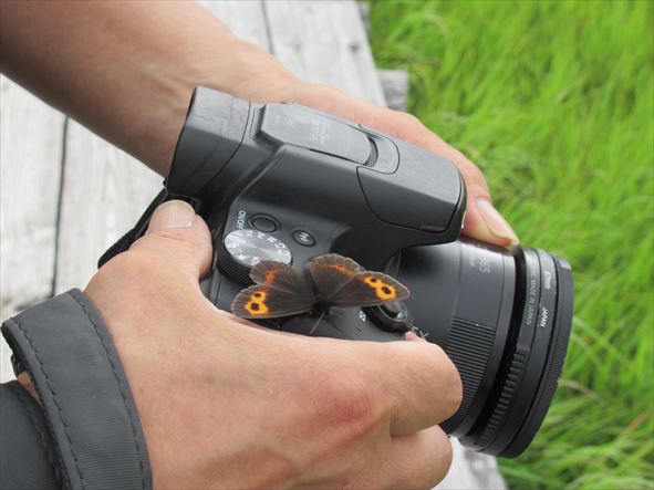 これ、ダンナのカメラにくっついて離れなかったベニヒカゲ。