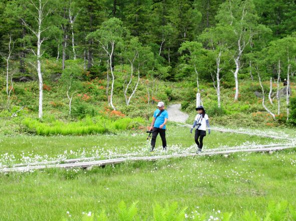 仕方なく、お二人はすでに朝に歩いていたという田ノ原湿原まで行きました。