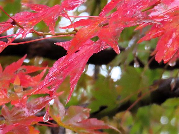 こちらは、もみじ園のもみじ。雨でしっとり濡れていました。