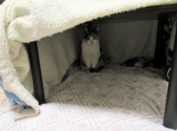 おこたの中の豆ちゃん。いや、おこたがデカイんじゃなくて、豆ちゃんが小さいのよ。