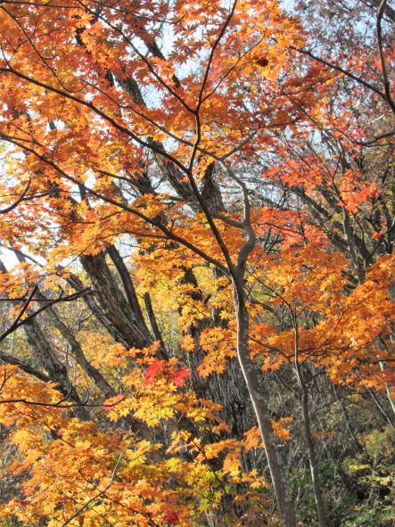 でも、登りも下りも三合目くらいまでは本当に素晴らしい紅葉で、ただ葉っぱが色づいているだけで心がウキウキするのでした。
