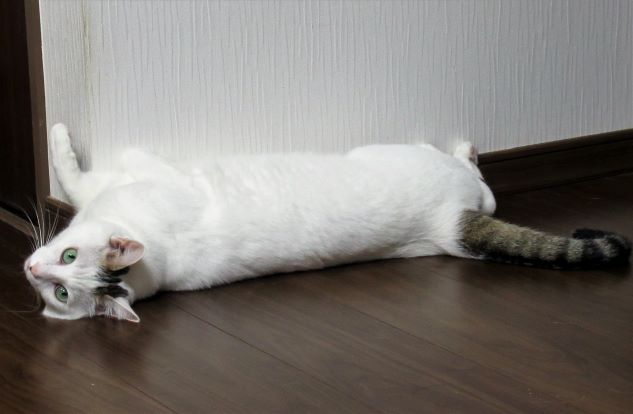 背中を向けて寝転がっていた八っちゃんを呼んだら顔だけこっち向きました。こらこら。