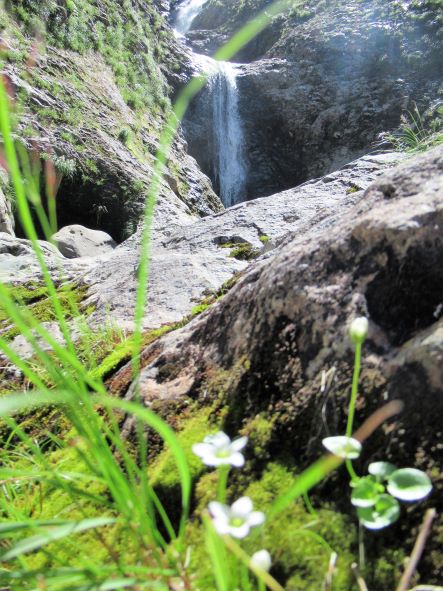 ヒメウメバチソウと滝、というコンセプトだったんだけどさ、滝にピントが合っちゃって、ヒメウメバチソウがボケちゃいました。