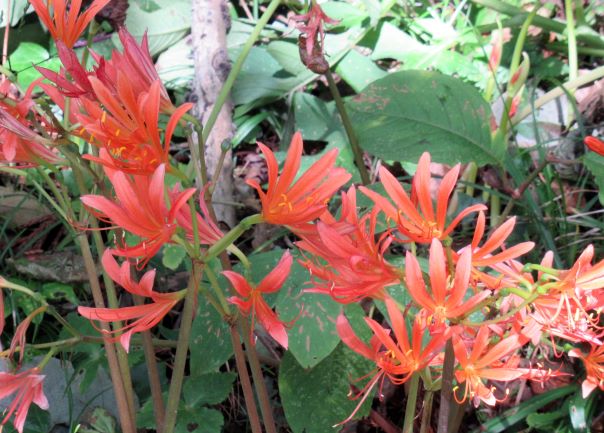 キツネノカミソリは、斜面に咲いていて、どの群落も見下ろす感じなので、全部反対向いているのね。