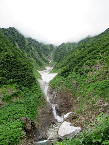 つい数日前まで覆っていたらしい雪が滝つぼに落ちていて、季節の移り変わりのスピードを感じました。