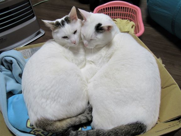 で、そこで白猫の八っちゃんが甘えまくっている声がお姉ちゃん猫たちに筒抜けになっていて、もーんもーんと文句言います。