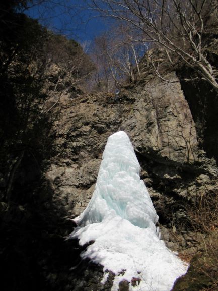 どうも、地元のニュースで画像が流されたらしく、初めて来たらしい人が見終えてお堂のあたりで昼食を食べている我々に近づいては凍っていましたか、とか聞きにきたくらいでした。