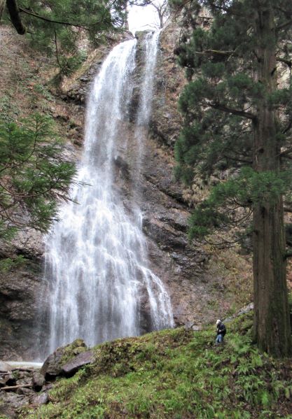 本日の旭滝です。右の杉のあたりにダンナが立っています。