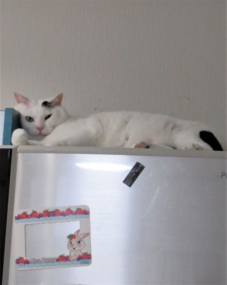 冷蔵庫の上で九ちゃんがアンニュイポーズ。