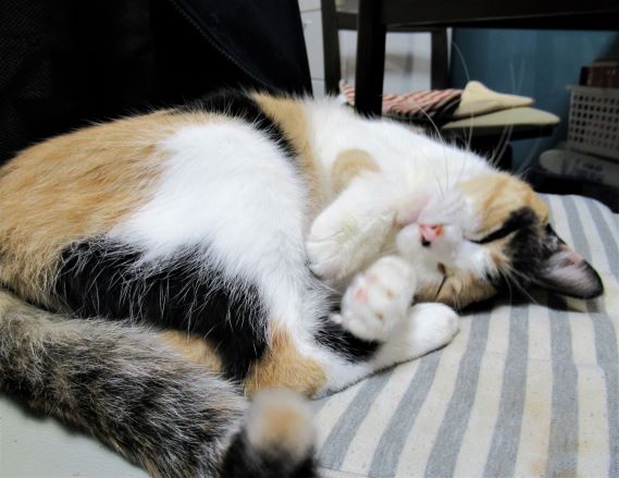 ダンナがどくと、すぐにダンナの椅子の上に乗る豆ちゃん。