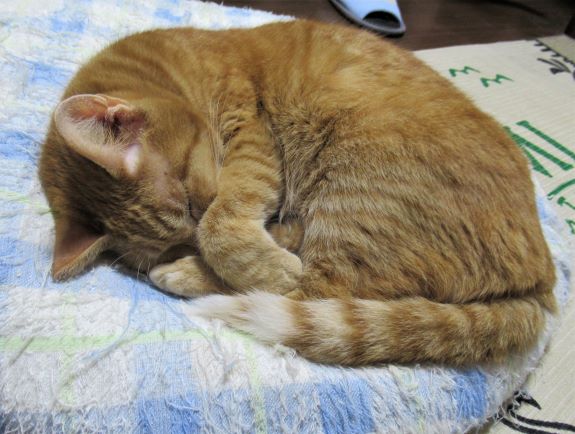 きゃこちゃんが丸まる秋になりました。よーく丸まってます。