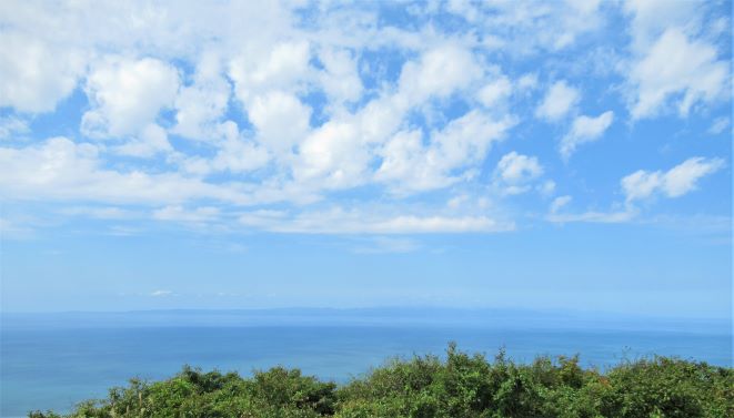 本日の弥彦から見えた佐渡島です。秋の青空でしたよ。
