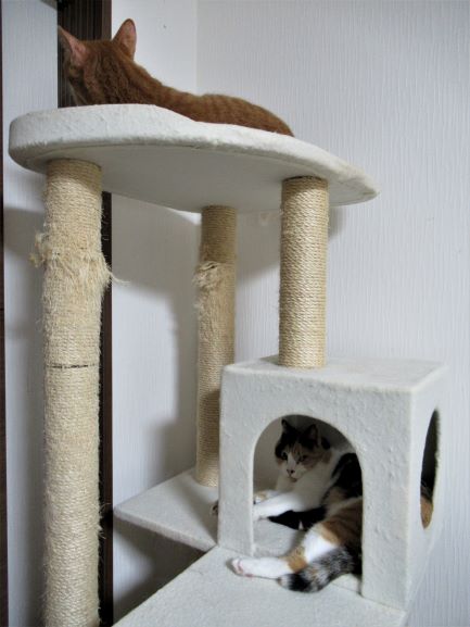珍しく同じキャットタワーにお姉ちゃんたちがいました。