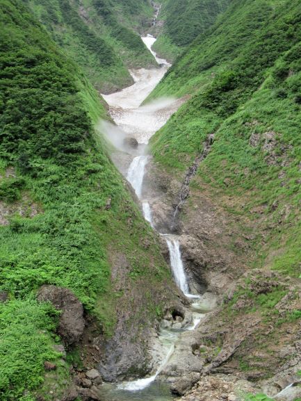 本日の本城の滝。もうすっかり全体が見えます。下流の雪もほとんど消えていました。
