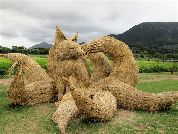 藁アートの一つ、九尾のきつねさん。かわいいわ。