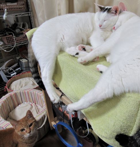 仲のいい白猫兄弟を、なによこいつら、という目で見るきゃこちゃんでした。
