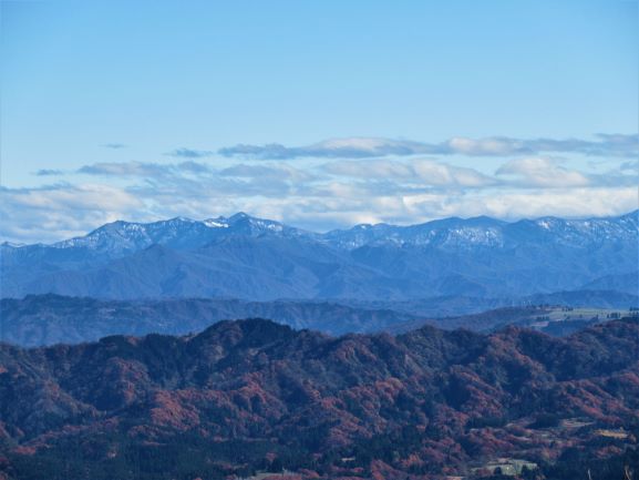 山頂はぐるりと眺望が広がり、里山の赤さと、遠くの山々の雪の積もりはじめの姿が本当にきれいでしたよ。