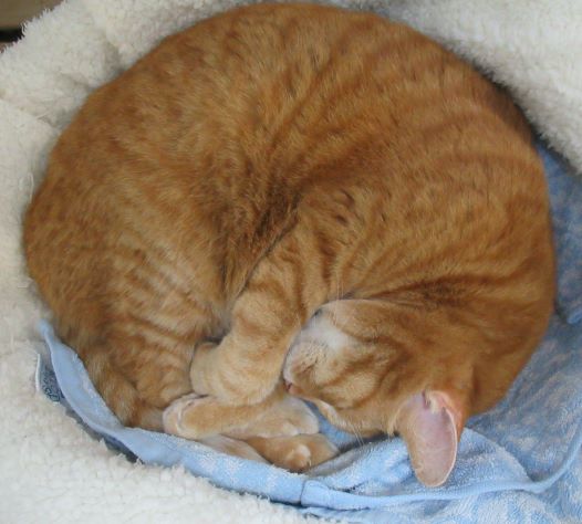 丸いペットヒーターを買ってあげました。ヒーターの形に寝てます。