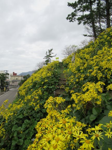 つわぶき坂は道路の法面の上のほうが一面黄色くなっていて、なかなかきれいでしたよ。