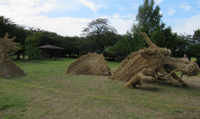 それから上堰潟公園に行って、藁細工アートを見てきました。