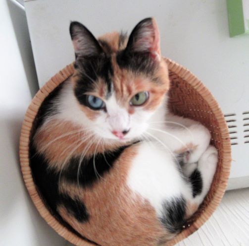 篭のなかの豆ちゃん。見事に収まっているのを真上から撮りました。