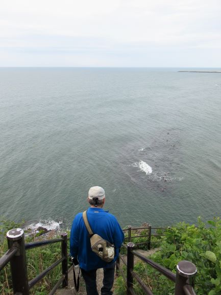 灯台から海に下る道。海に落っこちてしまうようだ。