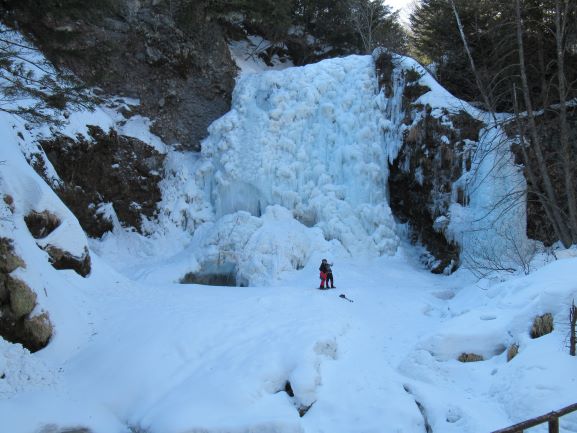 滝もこんな凍り方するんだ、というくらい柔らかい凍り方で絶対にアイスクライムはできない氷でした。あれはあれで珍しかったなぁと思います。