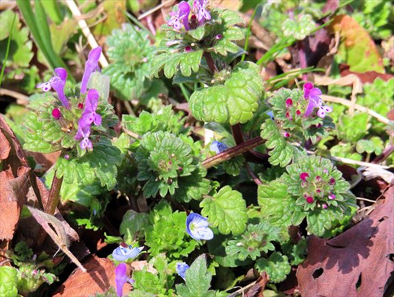 サクラケアパークと名前を変えた公園ではホトケノザやオオイヌノフグリが咲いてました。